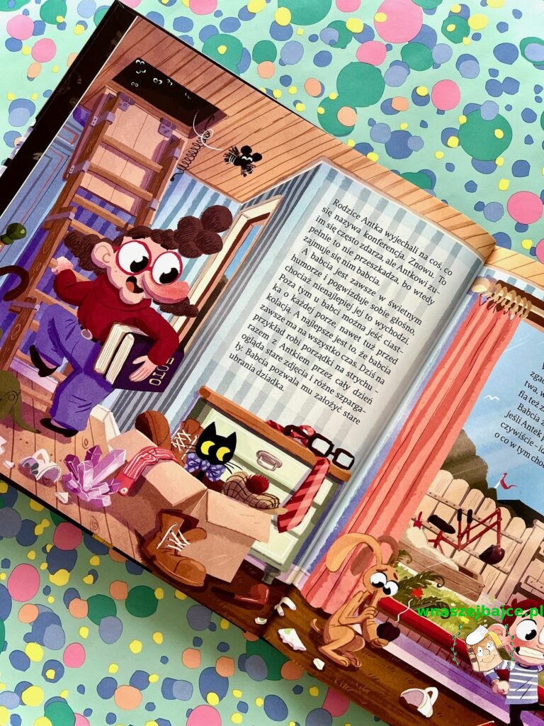 Babcia ma też coś jeszcze. Ma czas. A kiedy ktoś ma czas, mogą wydarzyć się naprawdę niezwykłe rzeczy. Tego dnia babcia robi porządki na strychu i zabiera Antka do pomocy. A przecież wszyscy wiemy, że strych to miejsce pełne tajemnic, starych przedmiotów i historii, które tylko czekają, aż ktoś znowu tchnie w nie życie.