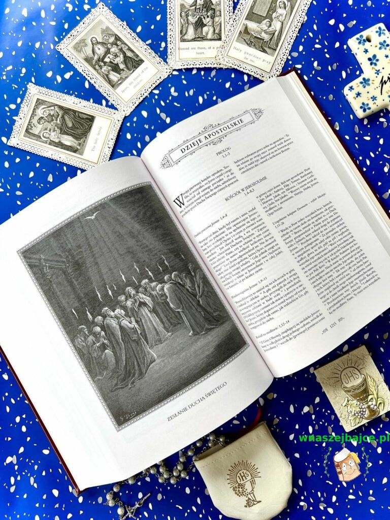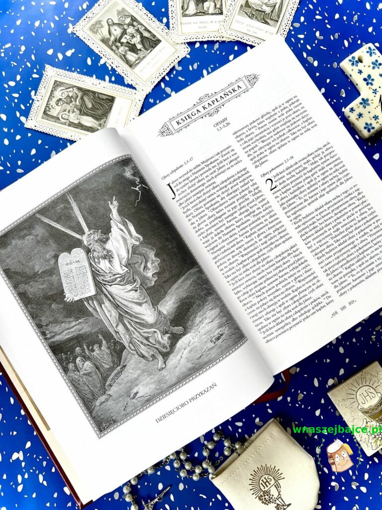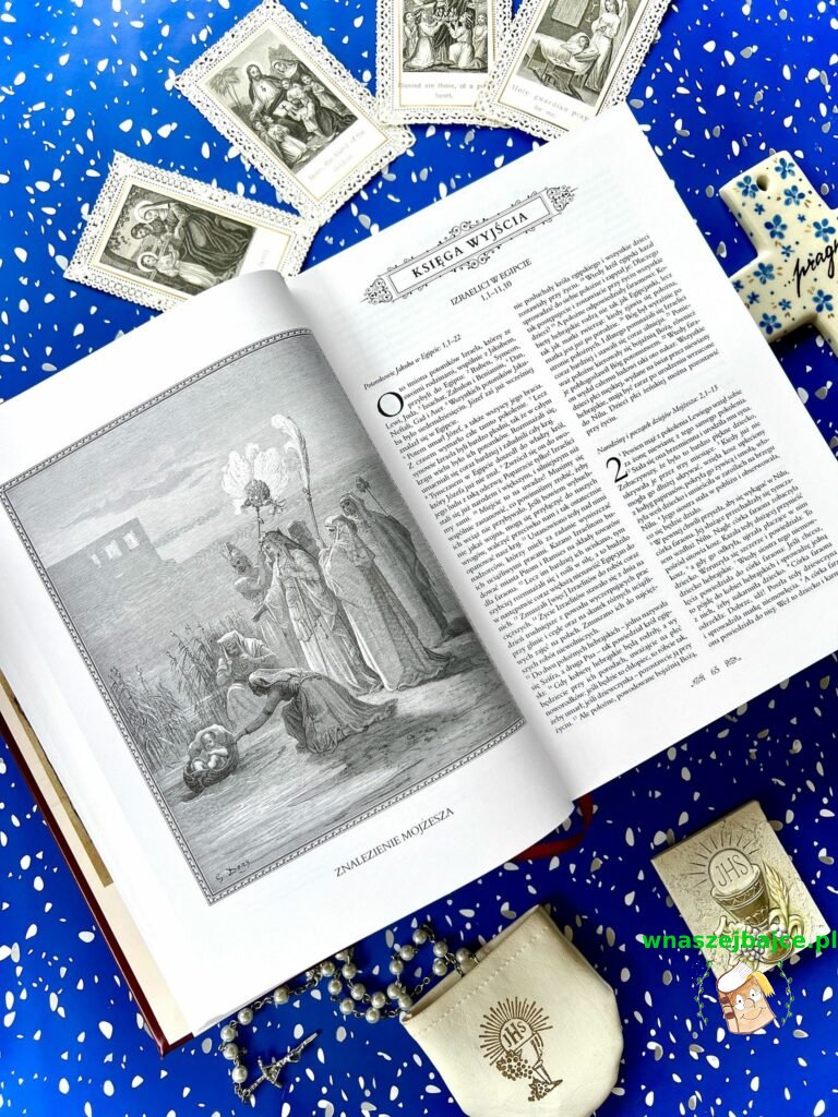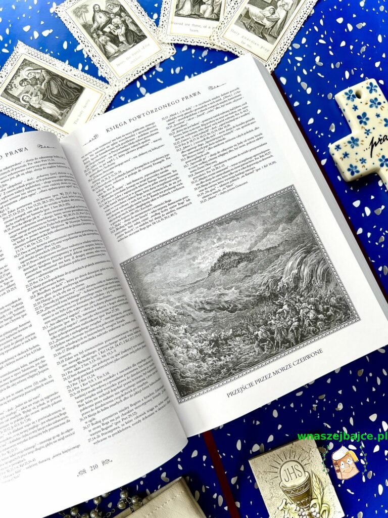 Samo wydanie robi ogromne wrażenie. Ilustracje Gustave’a Doré są po prostu poruszające: pełne emocji, światła i cienia, które oddają głębię biblijnych historii. Patrząc na nie, ma się wrażenie, że te opowieści stają się bliższe, bardziej ludzkie. Do tego dochodzą subtelne, złote zdobienia, twarda oprawa i piękna tasiemka – zakładka – wszystko to tworzy całość, która jest nie tylko książką, ale prawdziwym przedmiotem o wartości sentymentalnej.