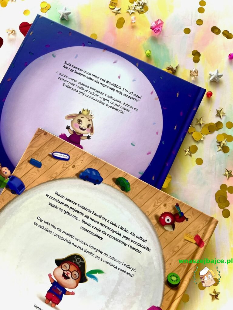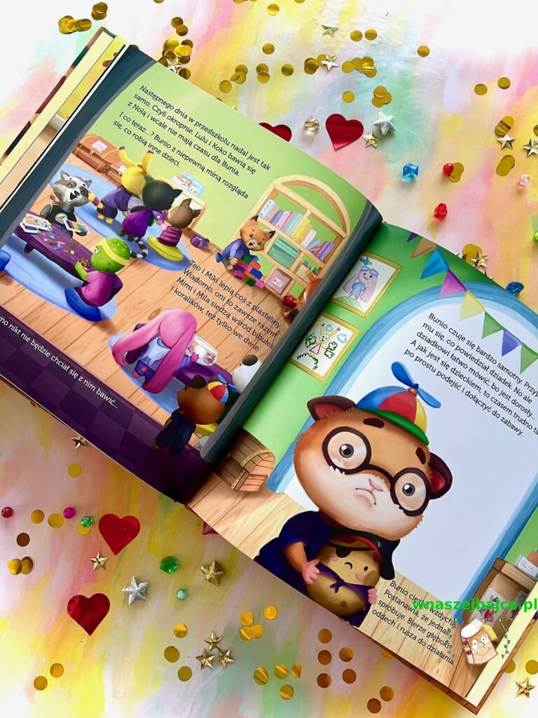Pewnego dnia w grupie pojawia się nowa dziewczynka – Nola. Lulu i Koko od razu poświęcają jej uwagę, a Bunio nagle czuje się odrzucony i samotny. Zazdrość, smutek, poczucie opuszczenia – to emocje, które często bywają trudne do nazwania, zwłaszcza dla małego dziecka. Historia Bunia pokazuje jednak, że takie chwile są częścią życia i mogą stać się okazją do nauki empatii i odwagi.