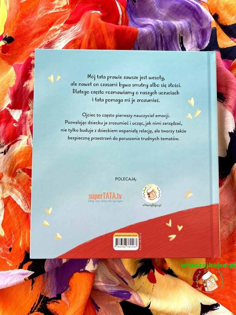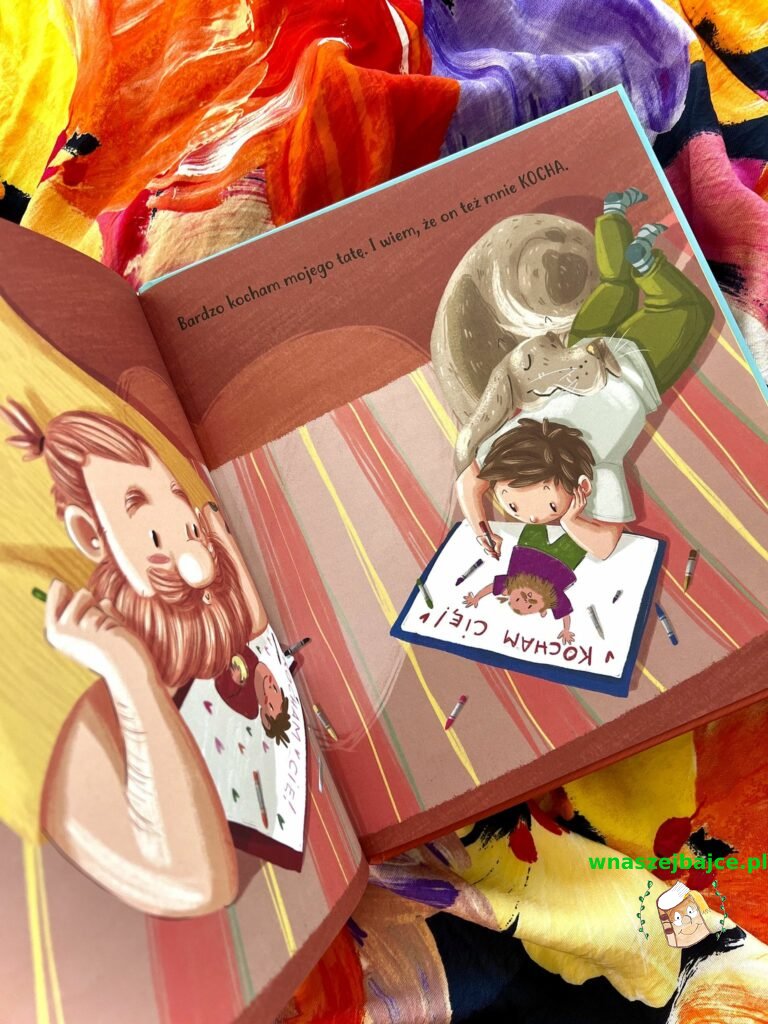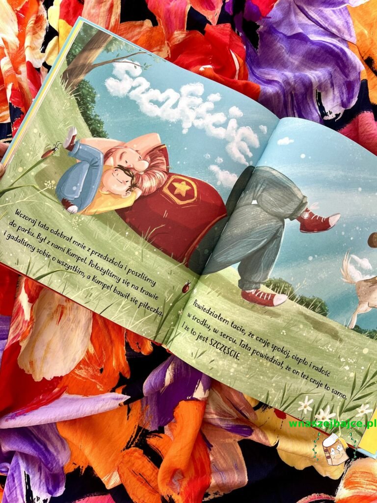 To historia relacji dziecka i taty, która rozwija się w zwykłych momentach: w rozmowach, w drobnych nieporozumieniach, w śmiechu, w strachu przed wodą i w cichym wzruszeniu podczas oglądania filmu. Ta książka pokazuje ojca nie jako bohatera z pomnika, ale jako człowieka, który czuje. Bywa zły, smutny, bezsilny, ale też dumny, wdzięczny i szczęśliwy. I właśnie w tej prawdzie jest jej największa siła.