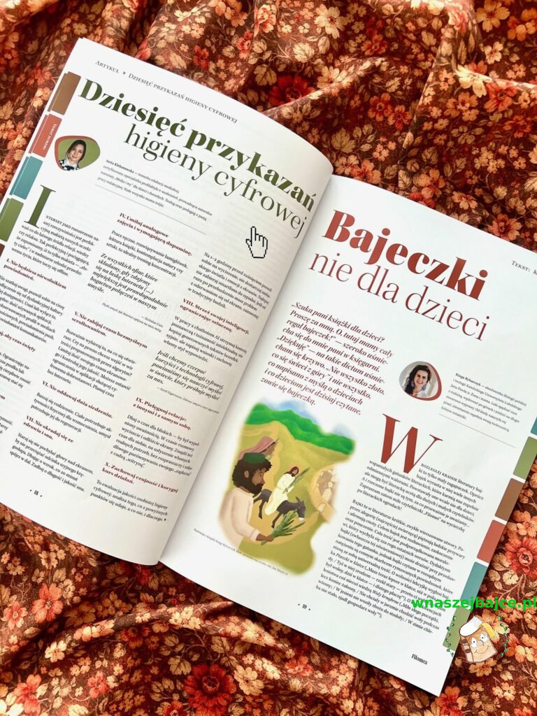 Bardzo poruszył mnie także blok artykułów o naszym współczesnym życiu w świecie ekranów. Tekst „Odzyskać siebie w świecie ekranów” stawia pytania, które wielu z nas dobrze zna: skoro od rana scrollujemy telefon, odpoczywamy przy ekranie i z nim zasypiamy, to kiedy naprawdę żyjemy? Jak odzyskać równowagę? Jak znów być obecnym?