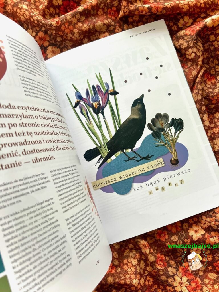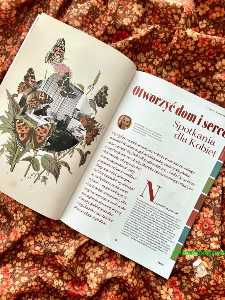 Bardzo spodobał mi się też artykuł Karoliny Guzik o spotkaniach dla kobiet. Autorka zadaje proste, a zarazem niezwykle ważne pytanie: Czy byłaś ostatnio w miejscu, w którym nie musisz nikogo udawać? W miejscu, gdzie możesz być sobą – śmiać się, płakać albo po prostu milczeć – i nikt cię nie oceni?