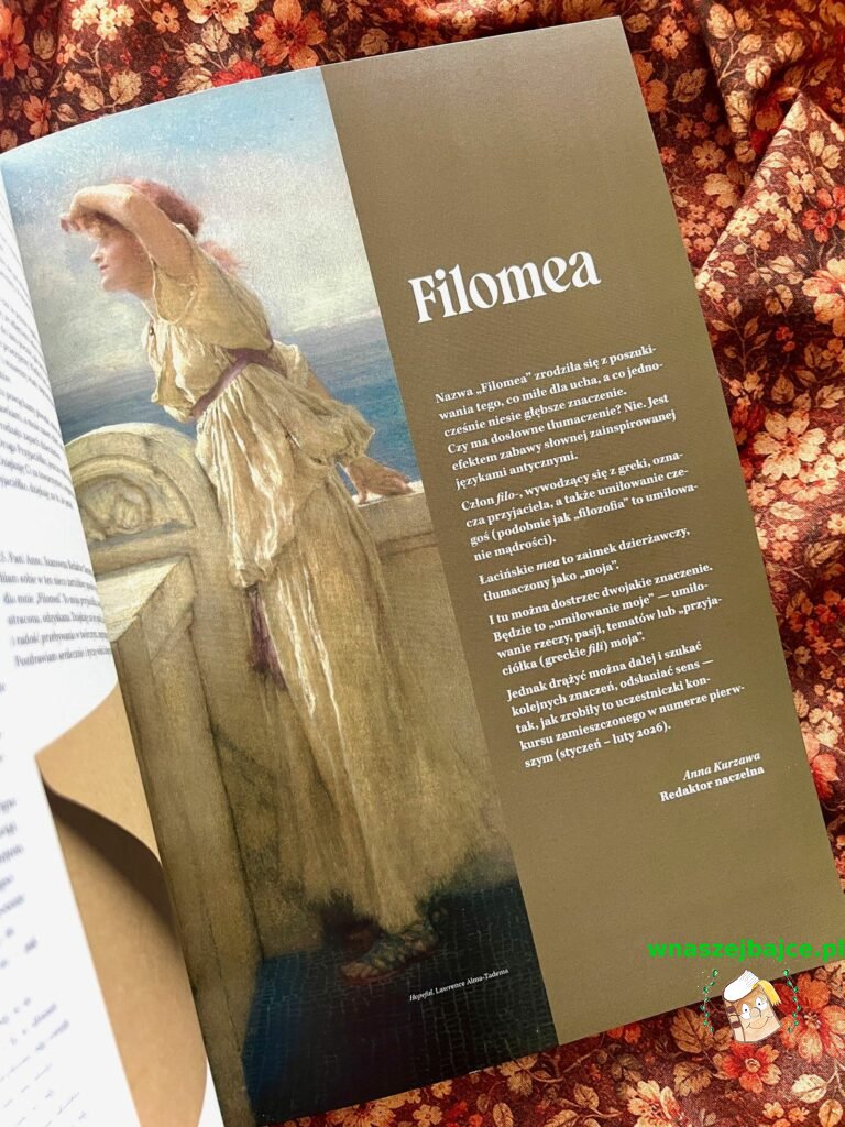 Na samym końcu redaktor naczelna Anna Kurzawa wyjaśnia, skąd wzięła się nazwa „Filomea” i co naprawdę oznacza to piękne słowo.
