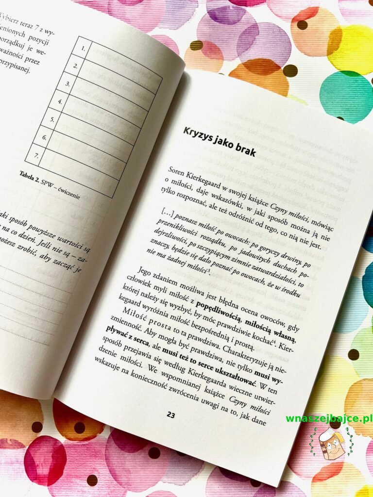 Ta książka staje się zaproszeniem do refleksji, do osobistego rachunku sumienia, do cichej rozmowy z samym sobą i z ukochaną osobą. Pomaga uchwycić przyczyny kryzysów, a jednocześnie pokazuje, że każde trudne doświadczenie może być początkiem odrodzenia.