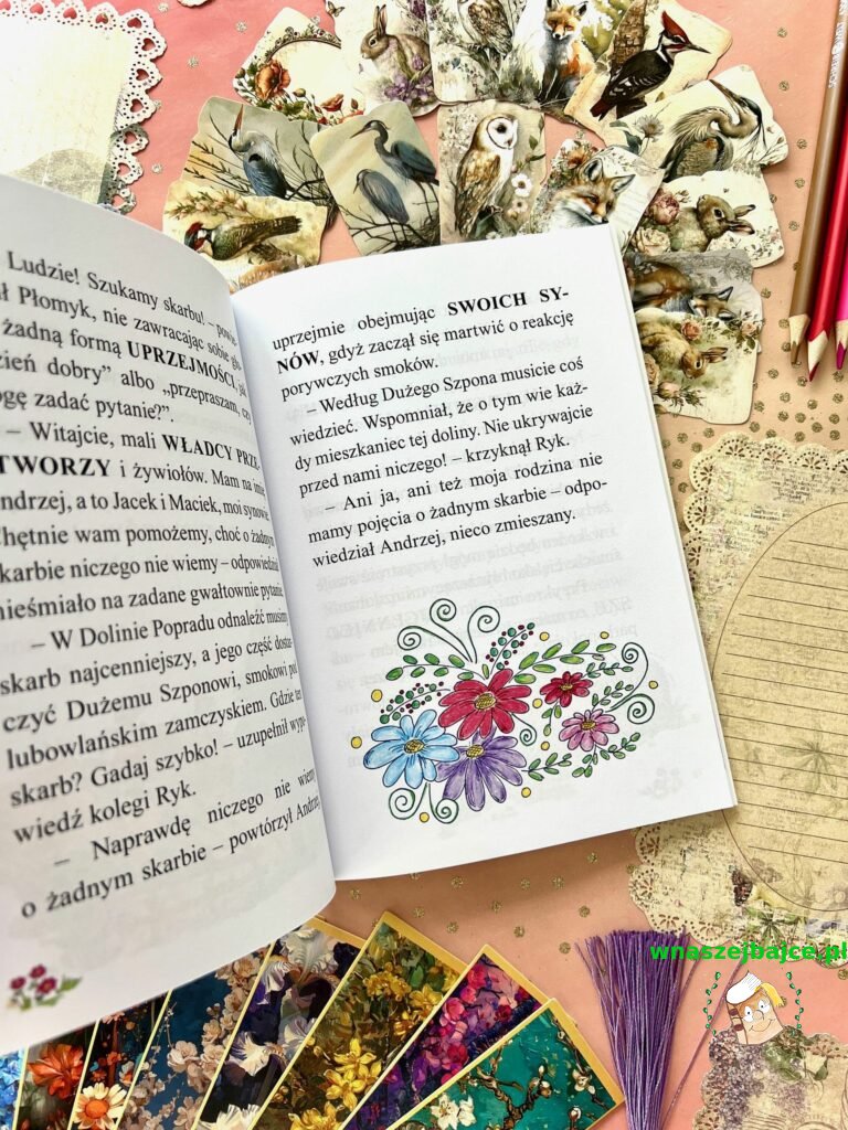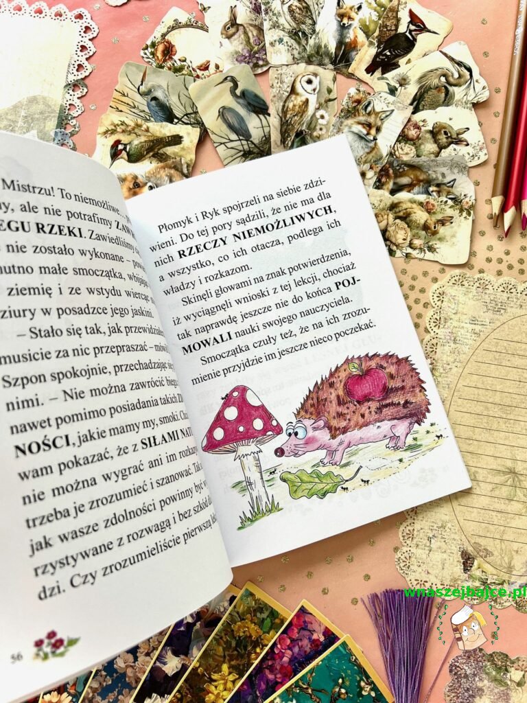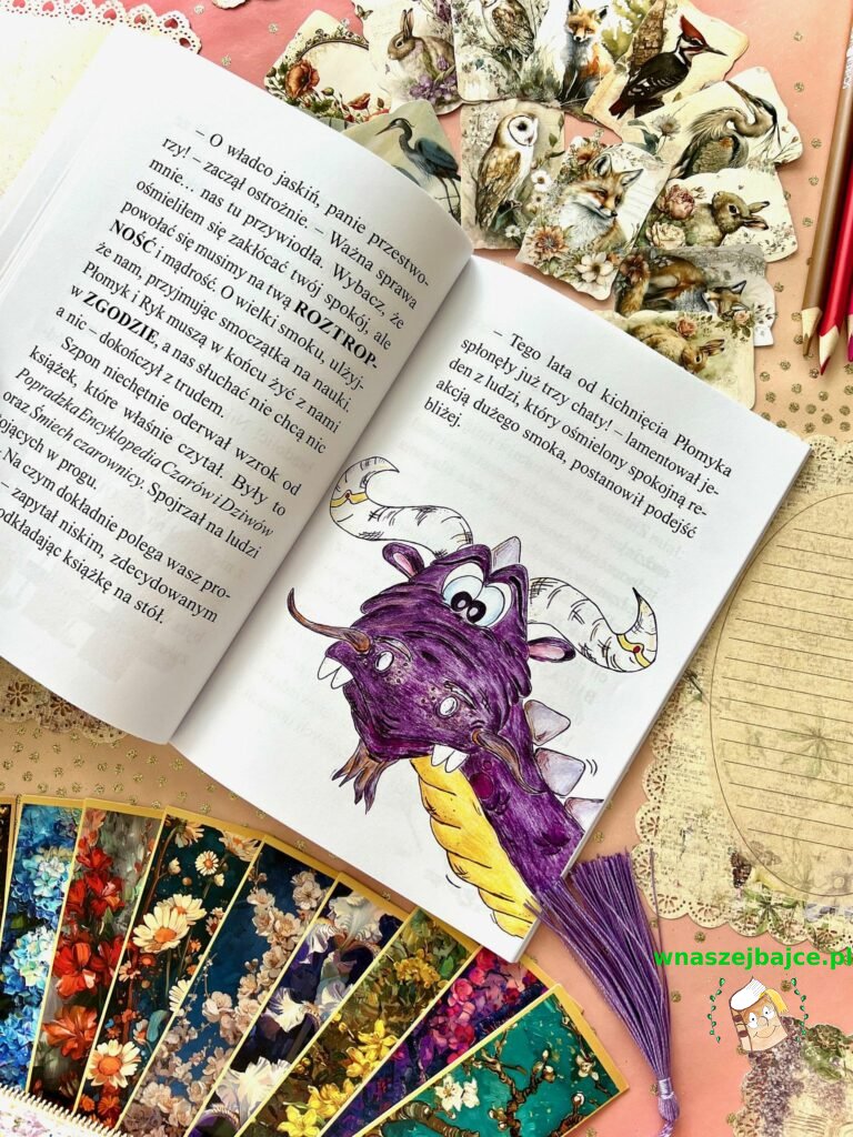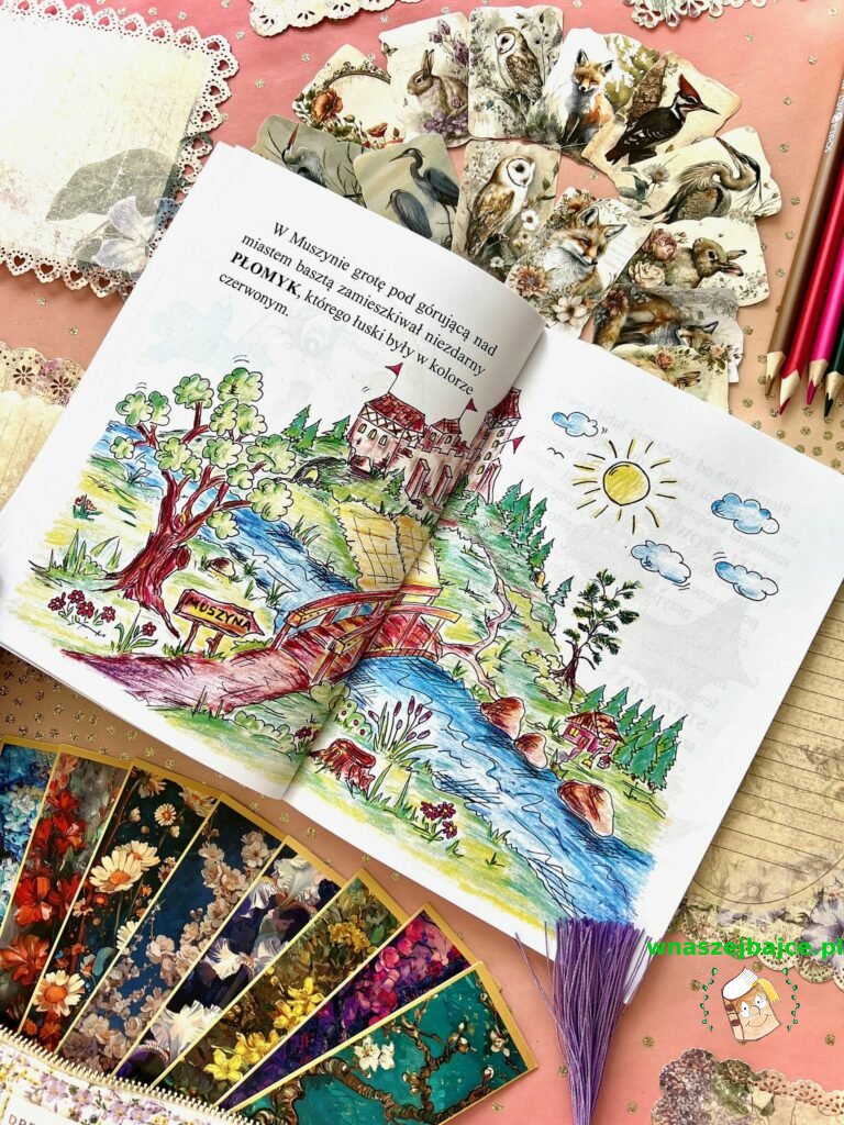 Ta historia jest jednak czymś więcej niż tylko opowieścią o pięknej krainie. W tej niezwykłej podróży naszymi przewodnikami stają się… smoki. I to nie byle jakie. Poznajemy młodego, nieco niezdarnego smoka Płomyka z Muszyny, którego czerwone łuski błyszczą w świetle ognia, oraz jego sąsiada Ryka z jaskini pod zamkiem w Rytrze. To właśnie oni prowadzą nas przez Dolinę Popradu i uczą rzeczy naprawdę ważnych.