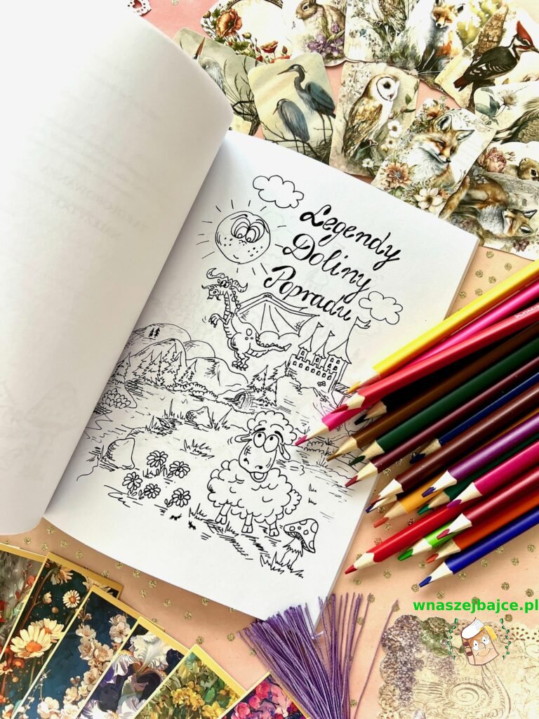 Na uwagę zasługuje także piękna kolorowanka, która towarzyszy książce. To prawdziwa zaproszenie do zabawy i twórczości. Wystarczy wziąć do ręki ulubione kredki i pozwolić wyobraźni działać. Każda pokolorowana strona staje się nową przygodą. Uśmiechnięte postacie z magicznej Doliny Popradu czekają, aby ożyć dzięki kolorom, które wybiorą mali artyści. Każdy rysunek może stać się małym arcydziełem, a wspólne kolorowanie to także piękny sposób na spędzenie czasu z tą niezwykłą historią.