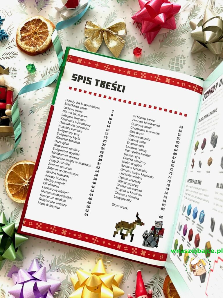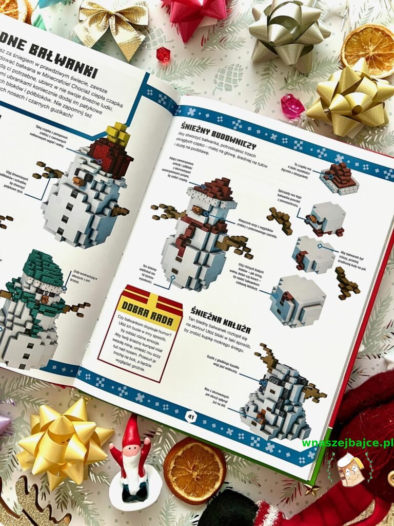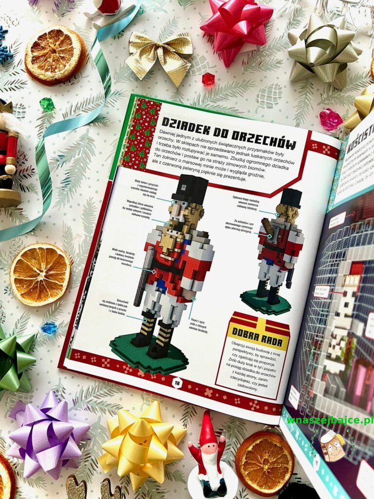 Ogromnym atutem tej książki jest to, że pobudza kreatywność zamiast ją ograniczać. To raczej iskra zapalna niż gotowy schemat. Pokazuje, jak bawić się kolorami, formą i klimatem zimy w świecie sześcianów, jednocześnie zostawiając przestrzeń na własne pomysły. Dzięki temu sprawdzi się zarówno u młodszych graczy, którzy dopiero uczą się budować, jak i u tych bardziej doświadczonych, którzy szukają świeżej inspiracji na świąteczne projekty.