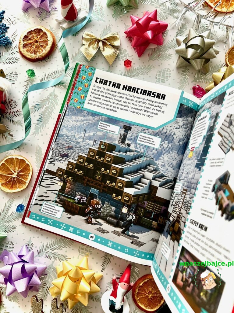 Autorzy doskonale wiedzą, co w Minecrafcie daje największą frajdę. Budowanie świata od podstaw, eksperymentowanie z blokami i tworzenie miejsc, do których chce się wracać. Książka prowadzi czytelnika przez zimową odsłonę gry w sposób lekki i bardzo inspirujący. Znajdziecie tu pomysły na konstrukcje, które od razu wywołują uśmiech. Od przytulnych domków otulonych śniegiem, przez pełne życia warsztaty Świętego Mikołaja, aż po lodowiska, górskie kurorty i bajkowe zimowe wioski. Każdy projekt aż się prosi, żeby go rozbudować po swojemu i dodać coś własnego.