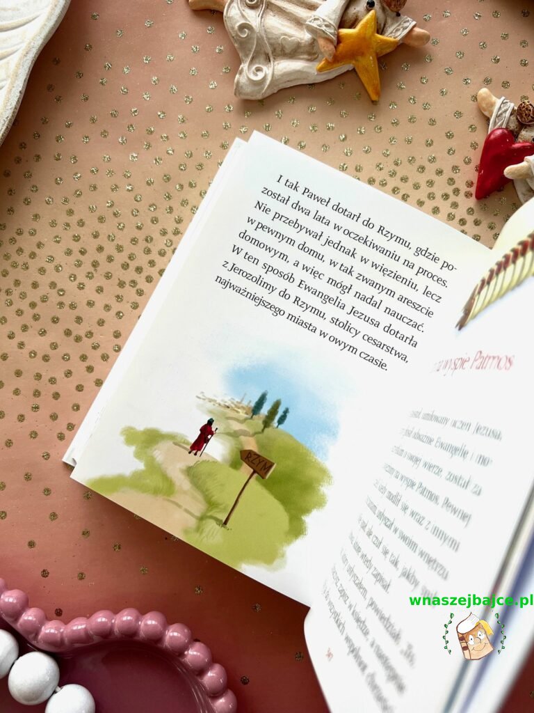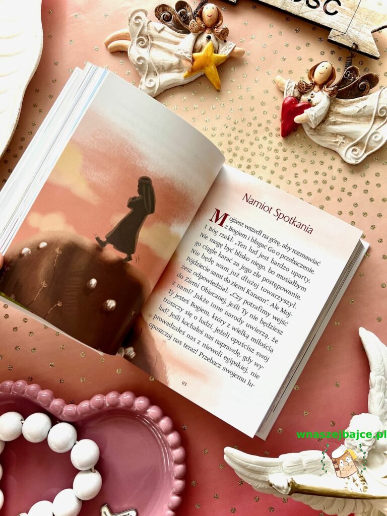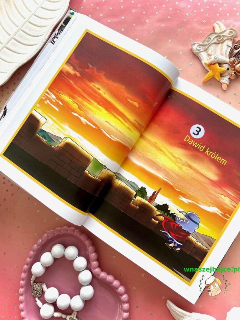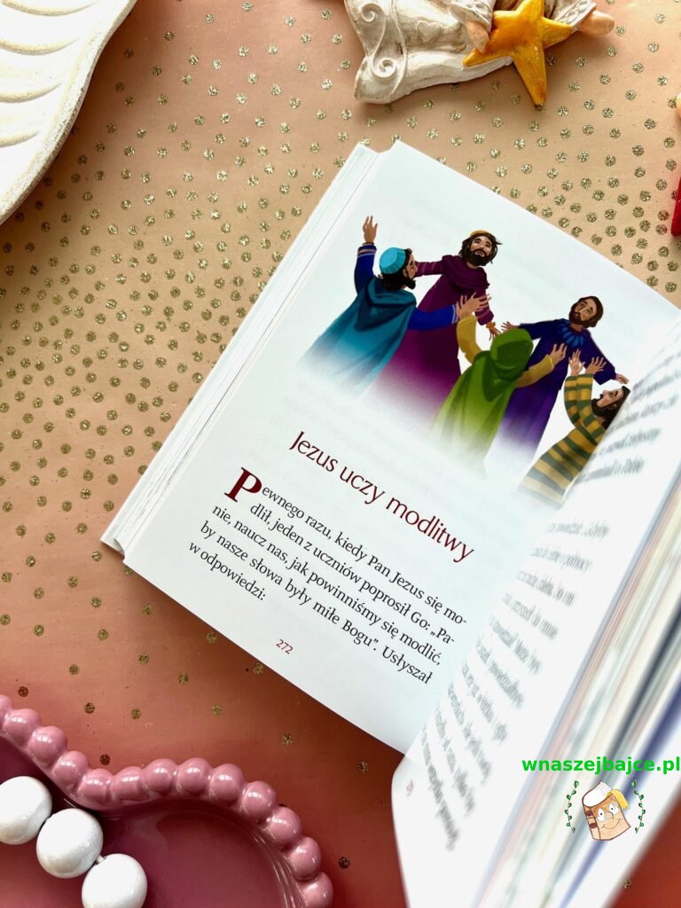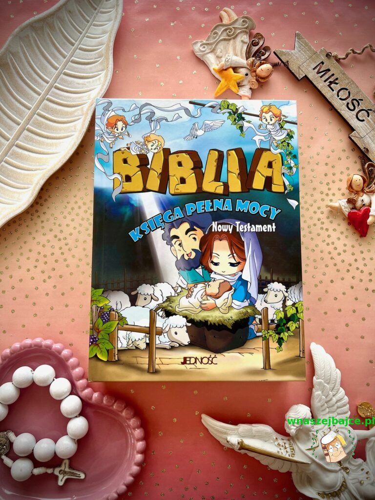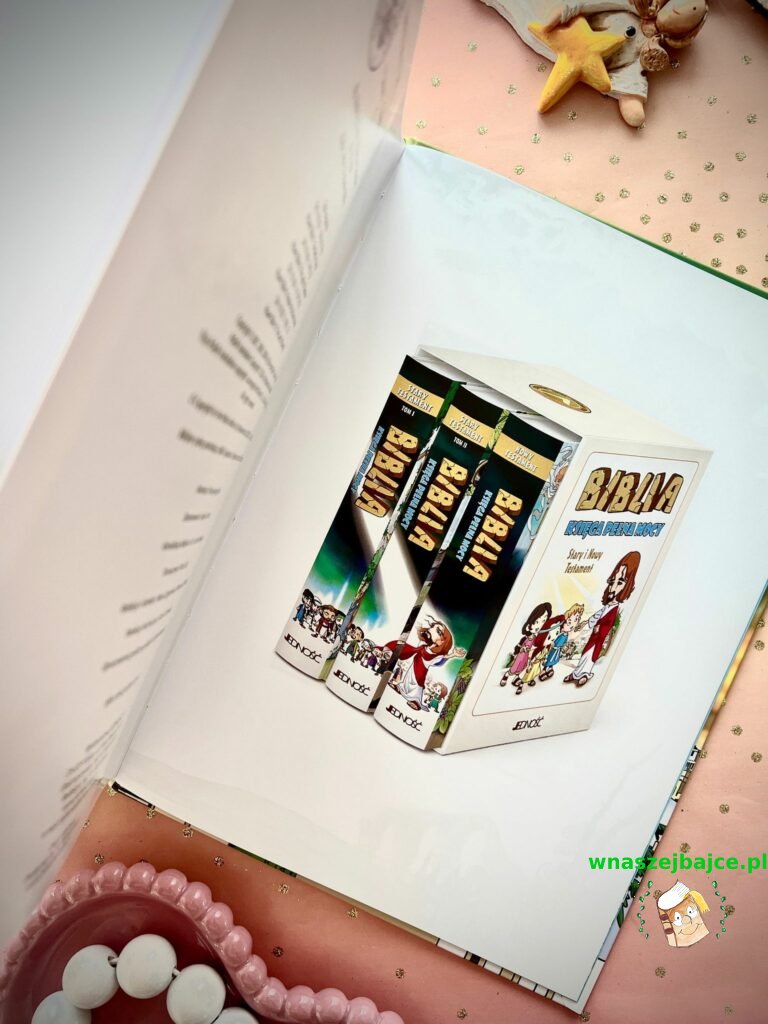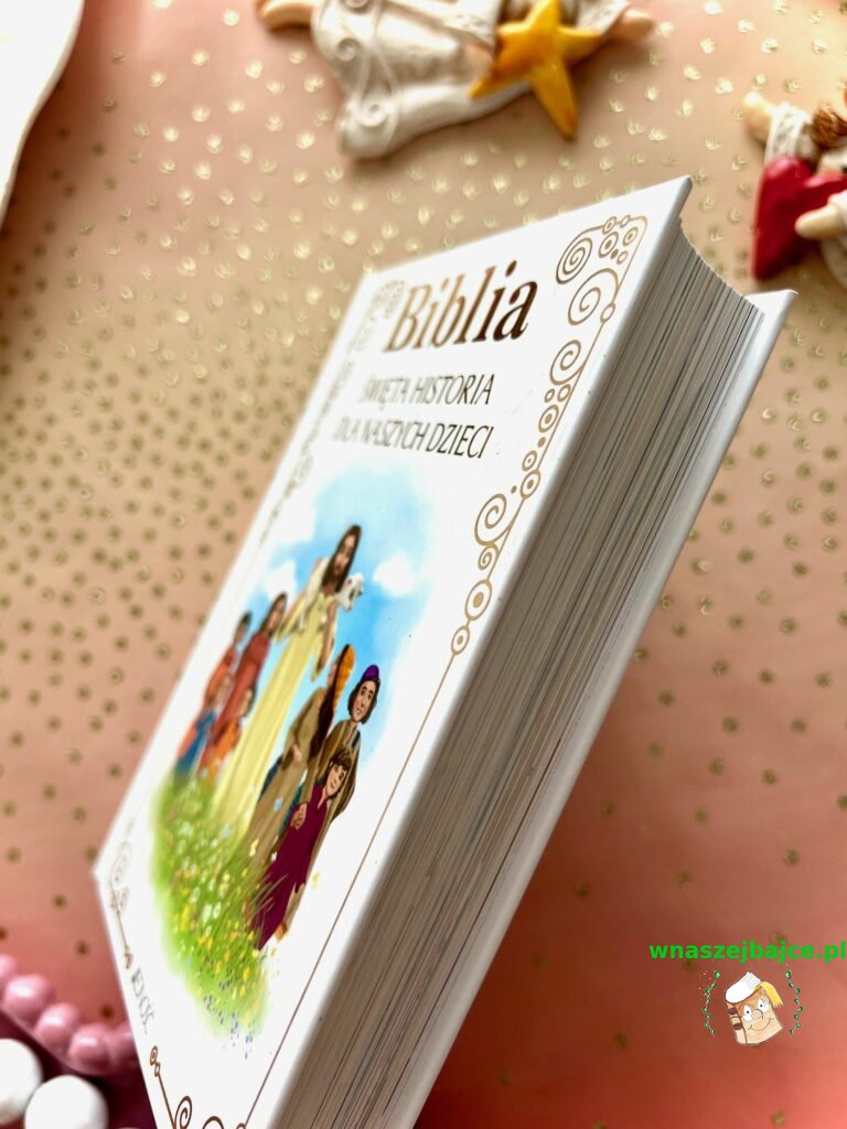 To coś więcej niż elegancki upominek. Już sama Biblia przyciąga uwagę swoim poręcznym formatem i piękną oprawą ze złoceniami, ale jej największa siła tkwi w środku. Znane historie ze Starego Testamentu i życia Jezusa zostały opowiedziane w sposób prosty, zrozumiały i naprawdę angażujący dla młodego czytelnika. To nie jest trudna, odległa lektura, tylko opowieść, która prowadzi dziecko krok po kroku przez sens historii zbawienia. Szczególnie poruszające są końcowe fragmenty inspirowane Apokalipsą, przedstawione tak, że nie budzą lęku, ale ciekawość i refleksję.
