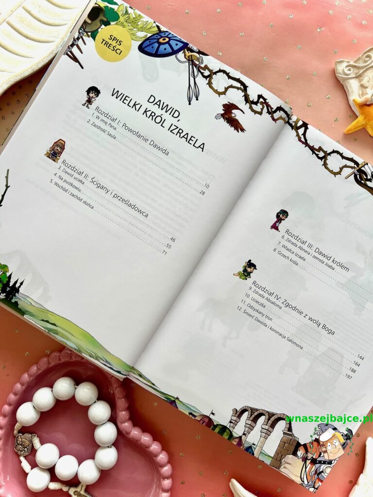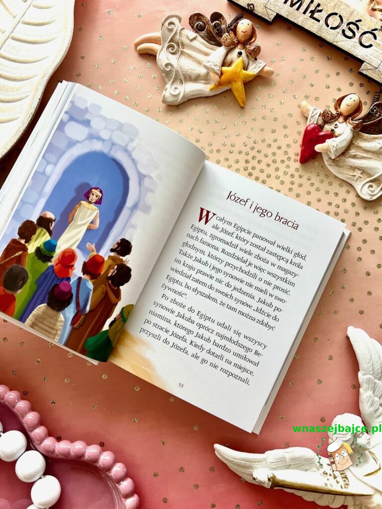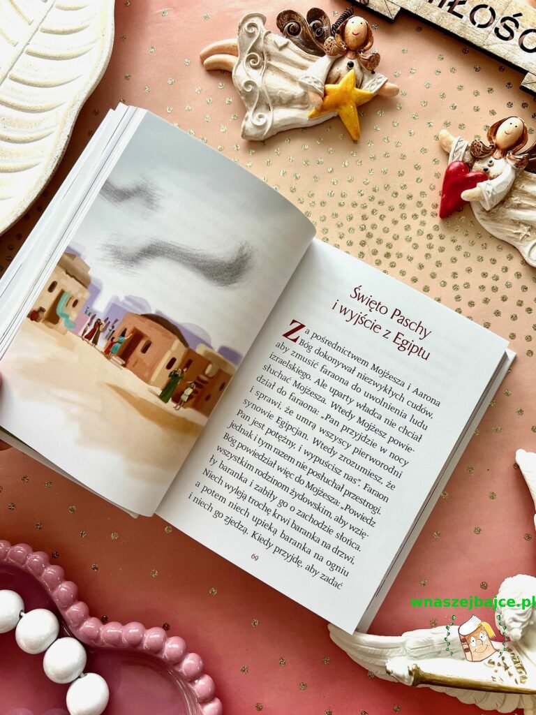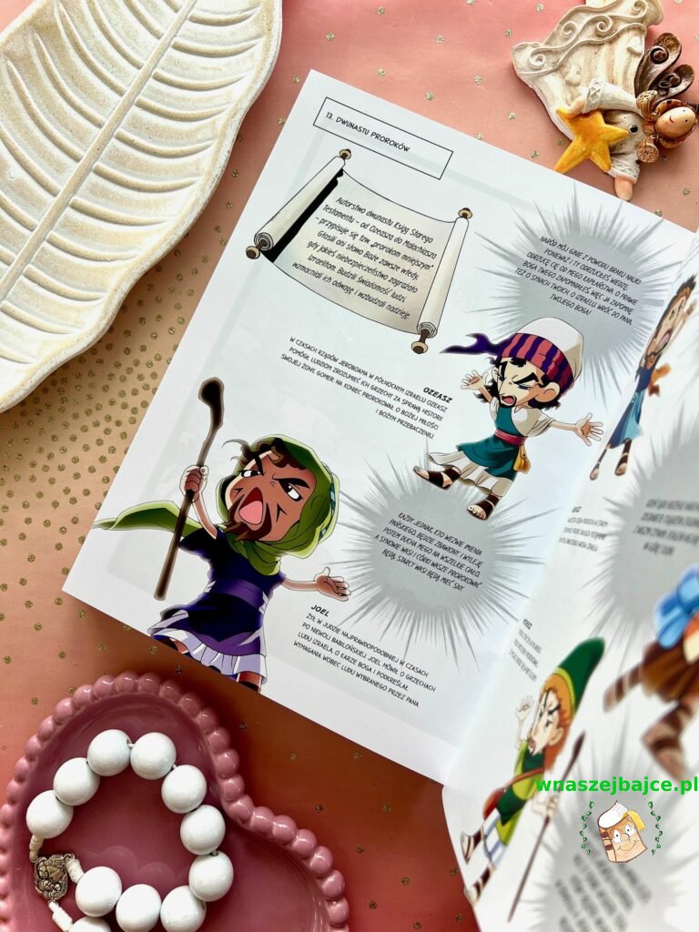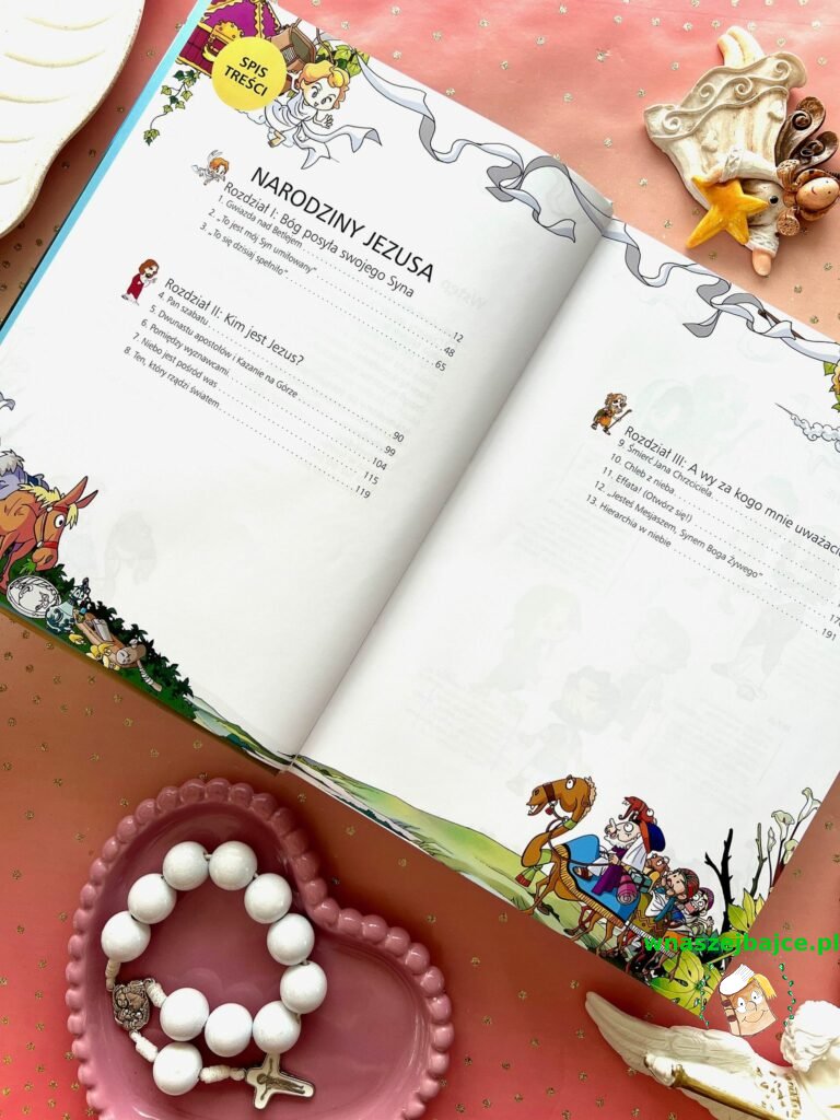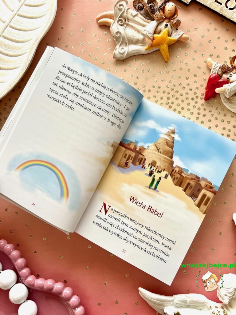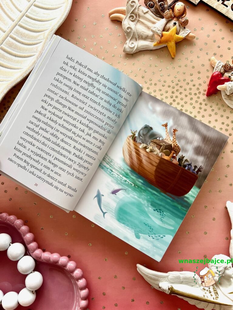 To coś więcej niż elegancki upominek. Już sama Biblia przyciąga uwagę swoim poręcznym formatem i piękną oprawą ze złoceniami, ale jej największa siła tkwi w środku. Znane historie ze Starego Testamentu i życia Jezusa zostały opowiedziane w sposób prosty, zrozumiały i naprawdę angażujący dla młodego czytelnika. To nie jest trudna, odległa lektura, tylko opowieść, która prowadzi dziecko krok po kroku przez sens historii zbawienia. Szczególnie poruszające są końcowe fragmenty inspirowane Apokalipsą, przedstawione tak, że nie budzą lęku, ale ciekawość i refleksję.