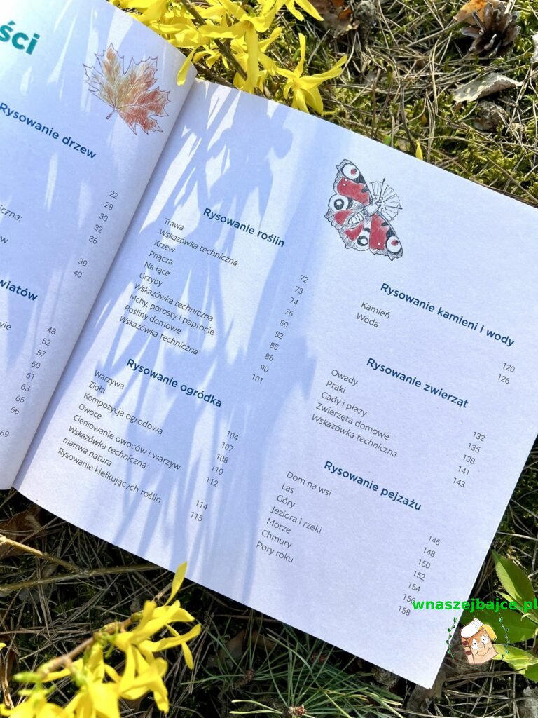Gorąco polecamy! To jeden z najbardziej kompleksowych, a przy tym przystępnych poradników rysunkowych, jakie mieliśmy w swojej biblioteczce. Sprawdzi się zarówno dla osób początkujących, jak i dla tych, którzy chcą uporządkować wiedzę i rozwinąć swoje umiejętności. Poręczny format sprawia, że świetnie nadaje się także do pleneru – można zabrać ją na spacer, do parku czy na wycieczkę i rysować bezpośrednio z natury. To zarazem nie tylko nauka różnorodnych technik, ale też zachęta do uważnego dostrzegania piękna otaczającej nas przyrody, które łatwo umyka w codziennym zgiełku.