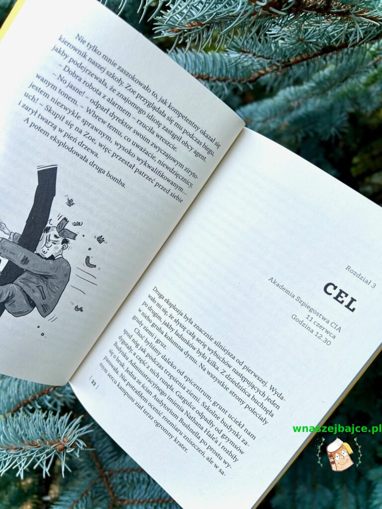 Ale to nie wszystko! Autor nie stroni również od tematów ważnych i bliskich młodemu czytelnikowi: wiary w siebie, lojalności, nie zawsze łatwych relacji z rówieśnikami i rodziną, a także niebezpiecznego wpływu fake newsów i teorii spiskowych. To, co na kartach powieści wydaje się abstrakcyjne, w rzeczywistości bywa boleśnie prawdziwe – naprawdę istnieją ludzie wierzący, że „jaszczurkoludzie” chcą przejąć władzę albo że… Ziemia jest płaska. Czytelnik wyniesie więc z lektury istotną lekcję – by z rozwagą podchodzić do informacji znalezionych w internecie i mediach społecznościowych. Naszej opinii na temat tej książki możecie jednak zaufać 😉 Z pełnym przekonaniem stwierdzamy, że trudno o lepszą serię akcyjno-szpiegowską – taką, która potrafi wciągnąć do lektury nawet największego młodego przeciwnika książek.