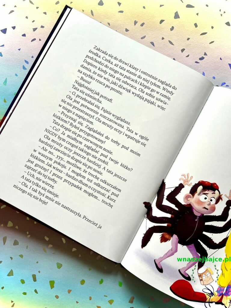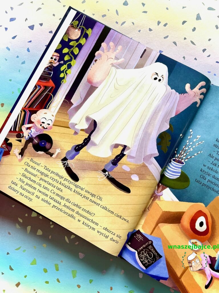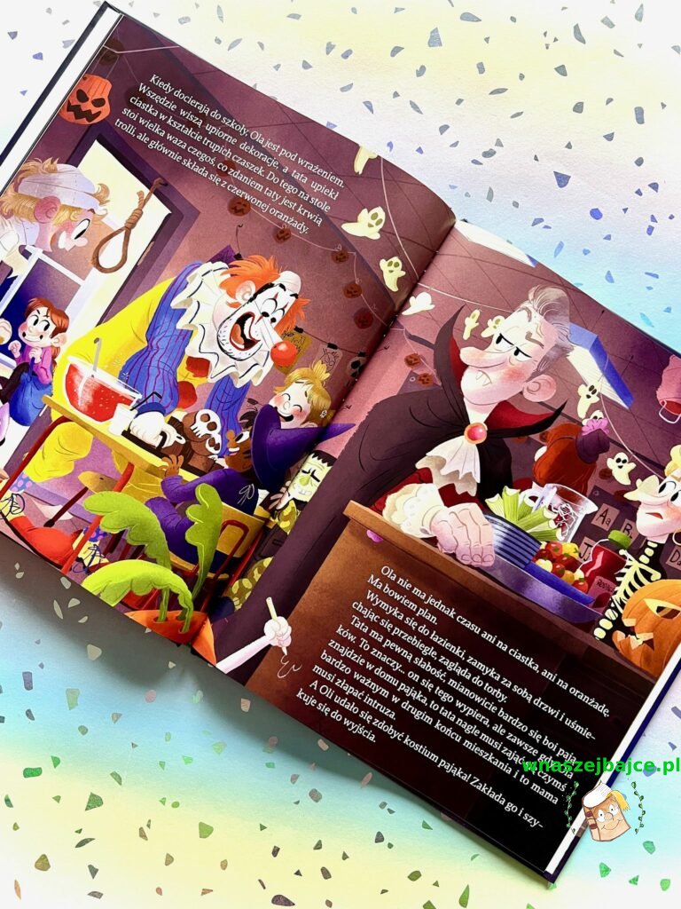 Dziś czas na najnowszą opowieść! W piętnastym tomie przezabawnej książki „Tata Oli straszy” nadchodzi święto duchów, pajęczyn i potworów, a wraz z nim cała masa kłopotów. Ola wcale nie cieszy się na szkolną zabawę halloweenową, bo doskonale wie, że kiedy tata pojawia się w szkole, dzieje się coś nieprzewidywalnego. A „nieprzewidywalne” w wykonaniu taty to mieszanka śmiechu, chaosu i drobnych katastrof w pakiecie… Oczywiście i tym razem nie mogło być inaczej.