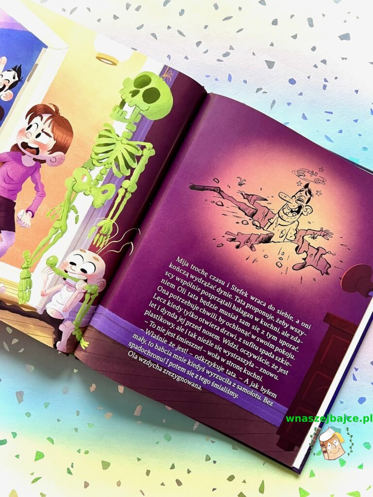 „Tata Oli straszy” to historia, przy której dzieci będą chichotać. Idealna do czytania pod kocem, przy kubku gorącej czekolady i koniecznie z latarką, bo kto wie, co czai się w szafie po przeczytaniu tej książki! 😉