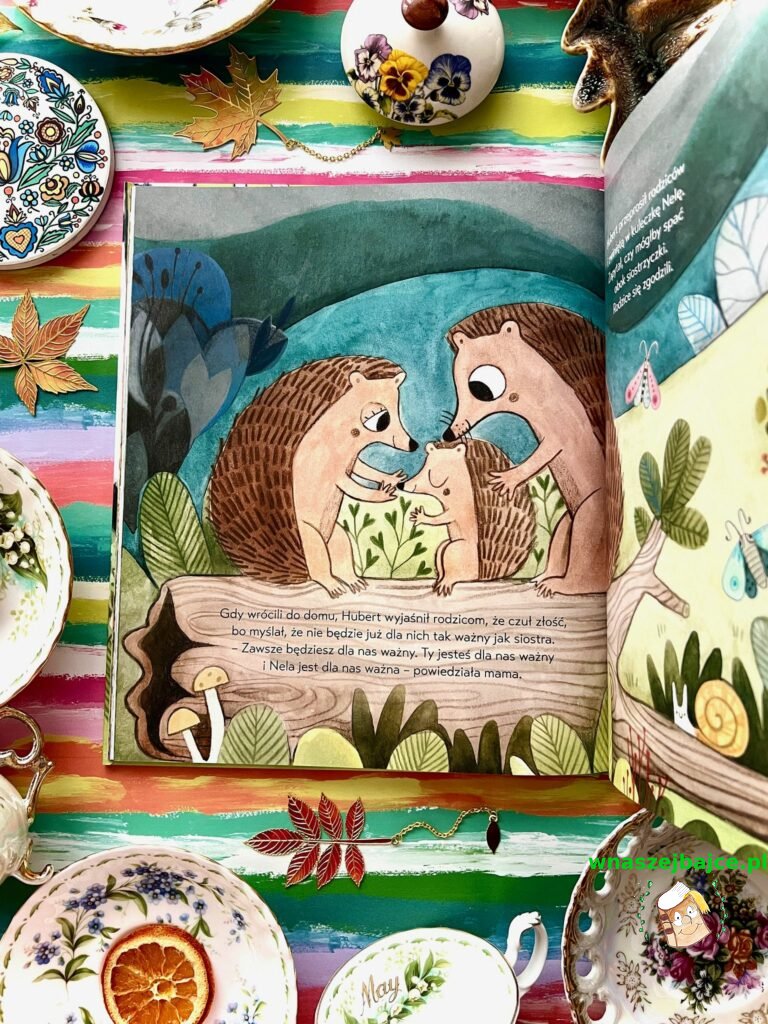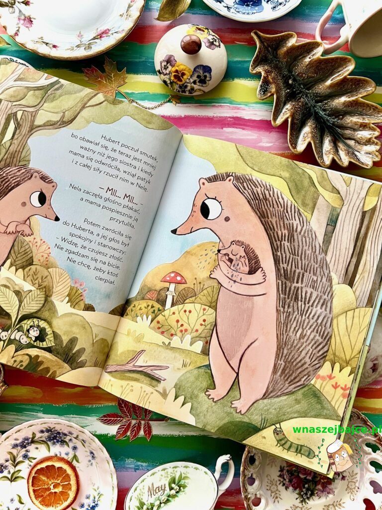 To historia, która rodzi się z codzienności i dlatego od pierwszych stron brzmi tak prawdziwie. W życiu małego jeża pojawia się młodsza siostrzyczka, a wraz z nią emocje, z którymi trudno sobie poradzić. Złość, zagubienie, poczucie bycia niewidzianym. Dla dorosłych to naturalna zmiana, dla dziecka często prawdziwe trzęsienie świata. Ta książka nie próbuje tych uczuć wygładzać ani tłumaczyć. Pokazuje je z ogromną czułością i zrozumieniem, takimi, jakie naprawdę bywają w dziecięcych sercach.