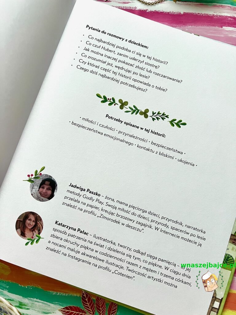 W tej historii czuć autentyczność! Nic dziwnego, że powstała z opowieści snutych przy usypianiu dziecka, z codziennych rozmów i uważnych obserwacji. Autorka – Jadwiga Paszko – mama piątki dzieci napisała ją z potrzeby serca i od serca. Dzięki temu jest tak bliska, ciepła i prawdziwa. Z książki wybrzmiewa także wielka miłość do przyrody, którą mamy na wyciągnięcie ręki, a w pędzie życia często jej nie dostrzegamy… Może właśnie dzięki głównemu bohaterowi znajdziecie czas na regularne, wspólne spacery do lasu czy parku. To nie tylko cenna chwila dla zdrowia, ale także dla budowania bliskości.