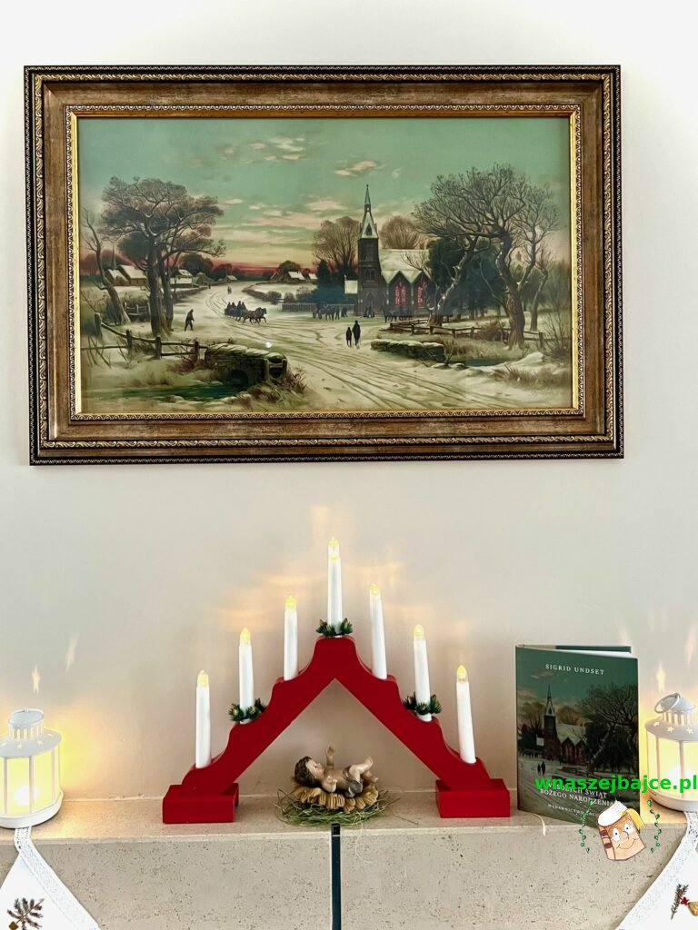 Tego dnia gdy zawiesiliśmy obraz kurier dostarczył mój egzemplarz książki „Wesołych Świąt Bożego Narodzenia”, a ja z przyjemnością zasiadłam pod kocykiem i zabrałam się za lekturę. Pomyślałam, że przeczytam kilka stron, a nie potrafiłam oderwać się ani na chwilę! Ta opowieść ma w sobie tyle ciepła, prostoty i miłości, że nie sposób odłożyć jej na bok…
