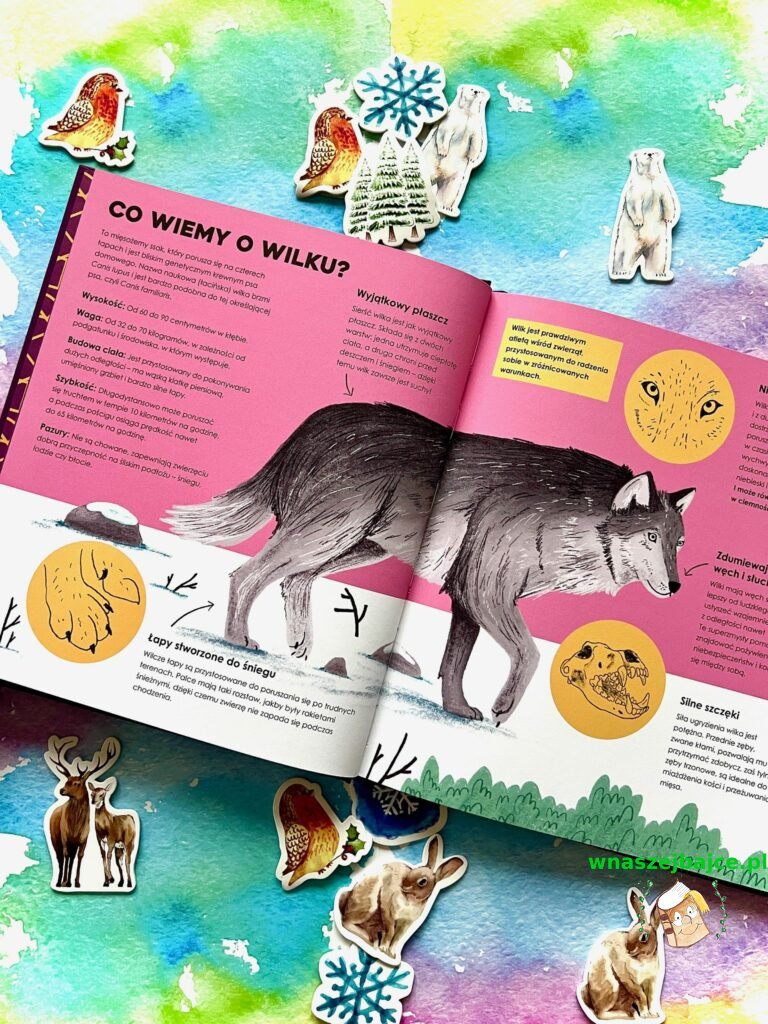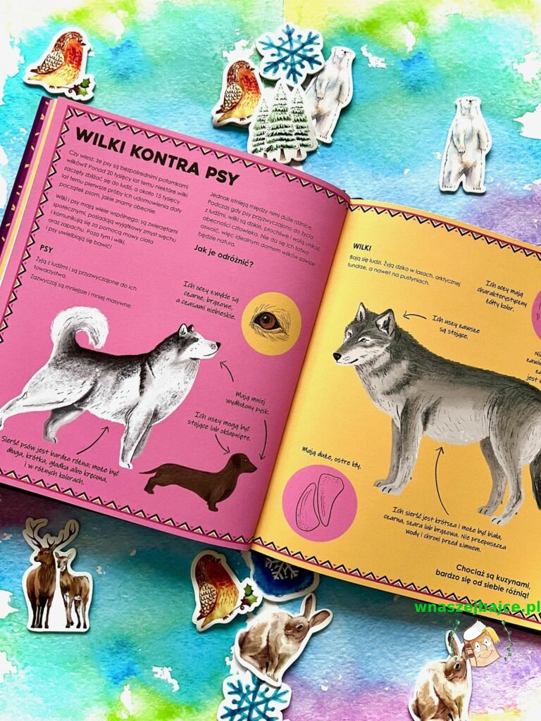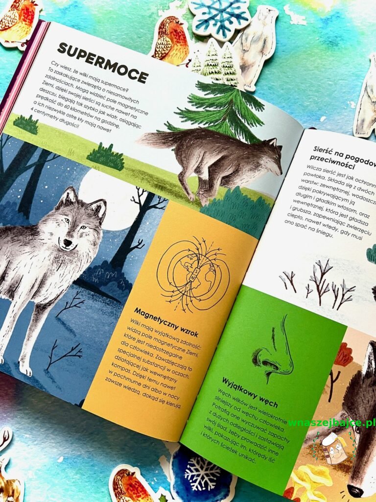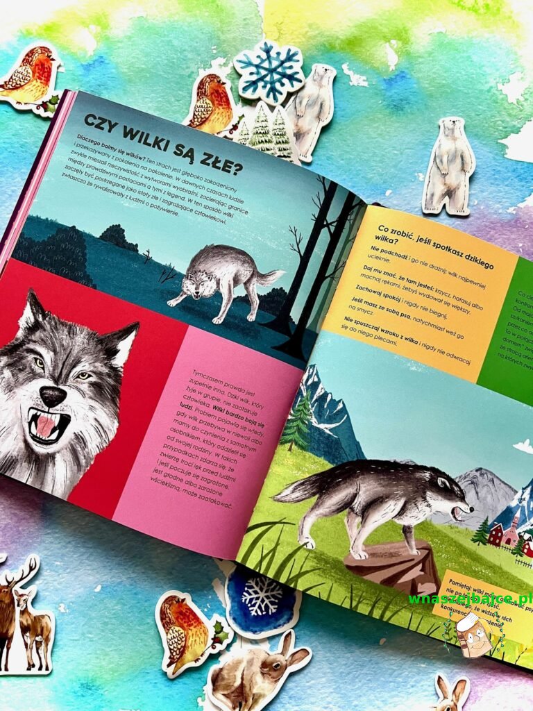Nie brakuje tu tematów trudniejszych. Przypominamy sobie, że na początku XX wieku wilki niemal zniknęły z wielu miejsc na świecie z powodu strachu ludzi i intensywnych polowań. Dzięki książce uczymy się, jak ważna jest ochrona wilków, edukacja i rozsądna turystyka, byśmy mogli żyć z nimi w harmonii. Poznajemy także ich znaczenie dla ekosystemów, między innymi na przykładzie Yellowstone, gdzie powrót wilków odmienił całe środowisko naturalne.