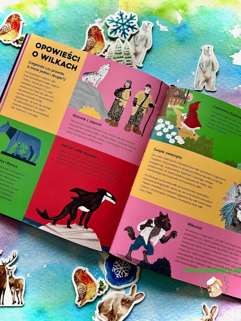 Na końcu książka przenosi nas w świat opowieści i legend. Towarzyszymy Romulusowi i Remusowi, zaglądamy do japońskich wierzeń, czytamy o wilkołakach i przypominamy sobie historię Czerwonego Kapturka. To piękne dopełnienie całej opowieści – świadectwo tego, jak silnie wilki zakorzeniły się w ludzkiej kulturze.